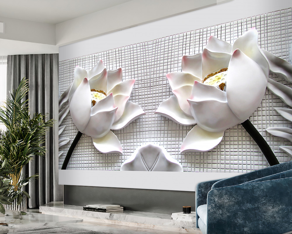 Papier peint boîtes de lotus blancs (article a91617 ) de la catégorie Papier peint Fleurs 3D