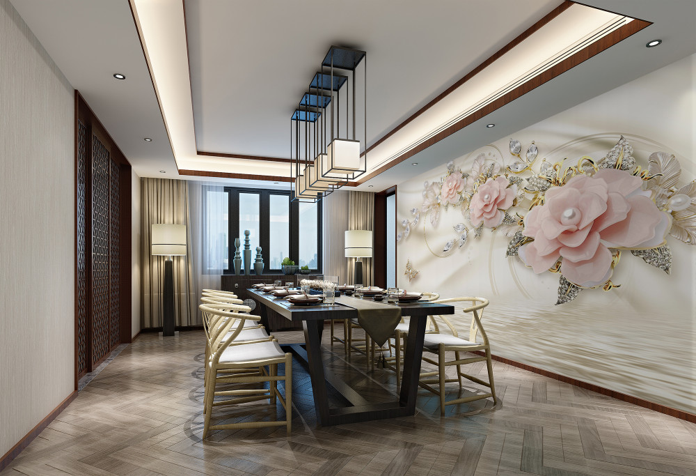 Papier peint branche de fleur rose avec des perles sur l'eau (article a94417 ) de la catégorie Papier peint 3D