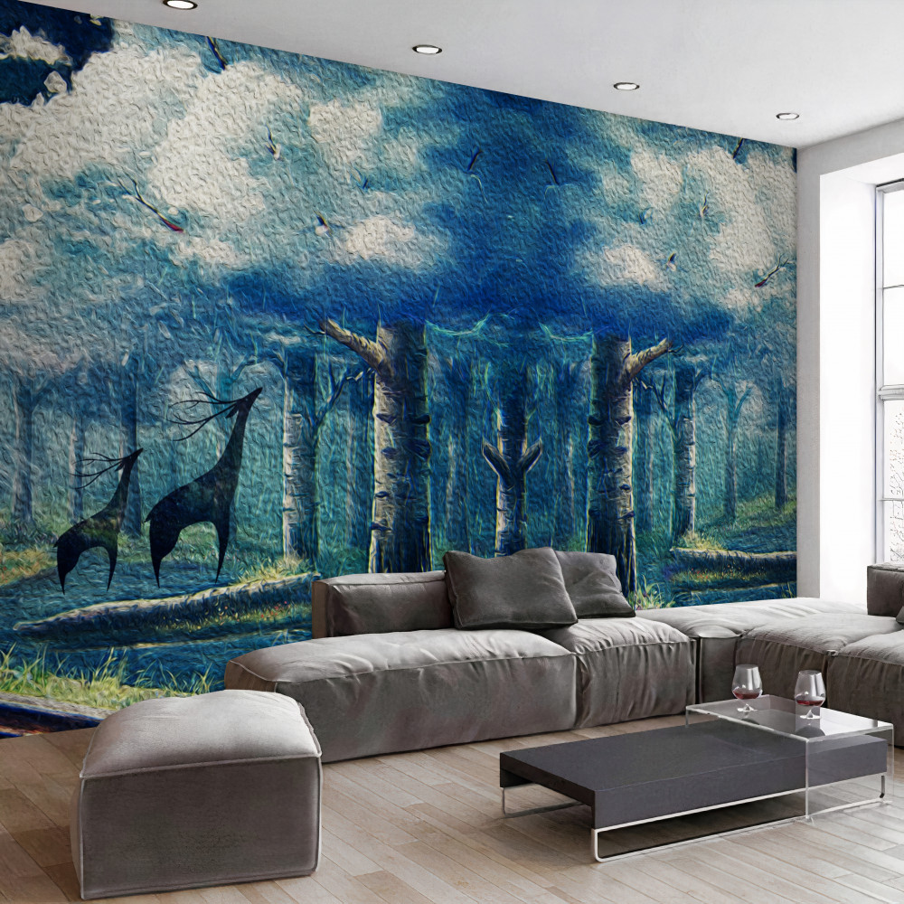 Papier peint Cerf marchant dans la forêt froide (article pb4486 ) de la catégorie Papier peint 3D