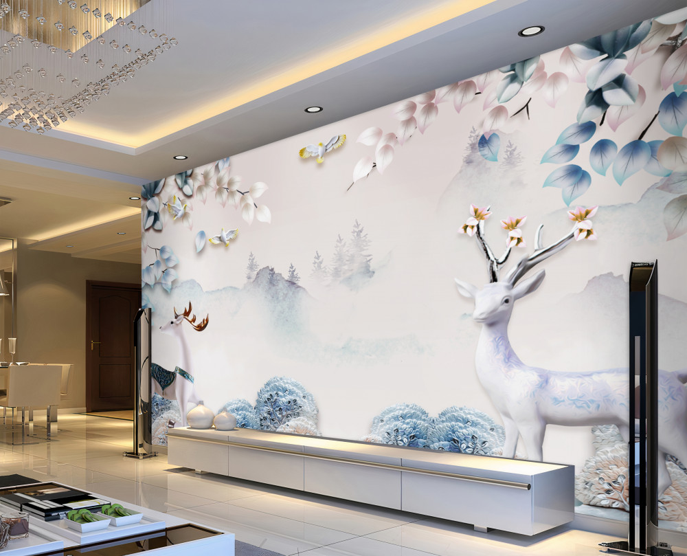 Papier peint Cervers marche dans le brouillard dense (article pb1115 ) de la catégorie Papier peint 3D