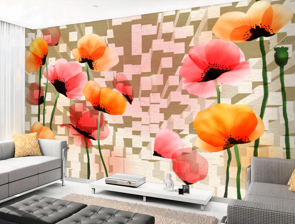 Papier peint Composition de pêche et coquelicots roses (article a91365 ) de la catégorie Papier peint Coquelicots