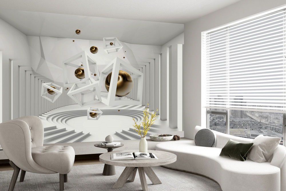 Papier peint Cubes blancs et boules d'or (article a93674 ) de la catégorie Papier peint 3D