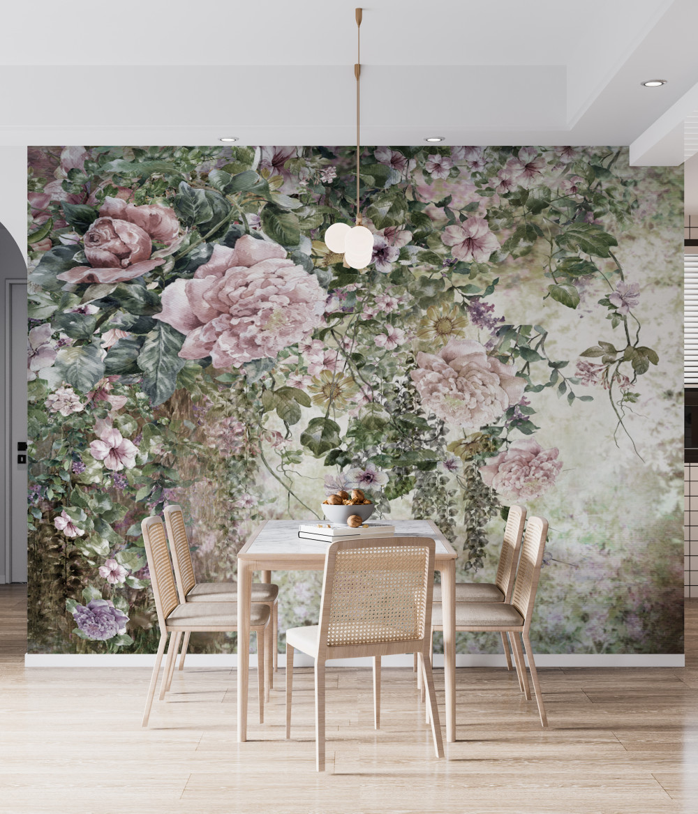 Papier peint De nombreuses fleurs de printemps avec du vert (article a89560 ) de la catégorie Papier peint Floral