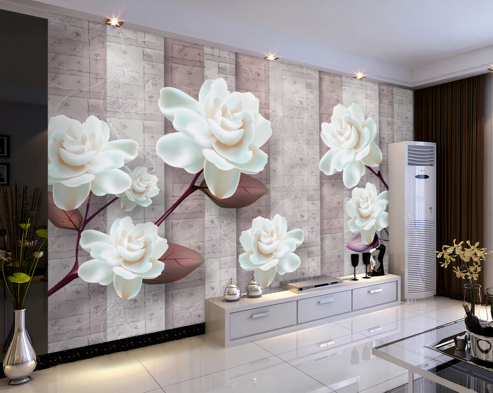 Papier peint Des fleurs blanches comme la neige sur les branches (article pb4477 ) de la catégorie Papier peint Fleurs 3D