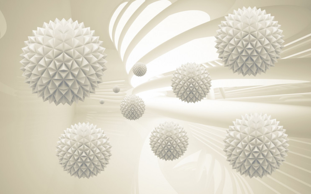 Papier peint des sphères brillantes flottant en perspective (article a91341 ) de la catégorie Papier peint Tunnel 3D
