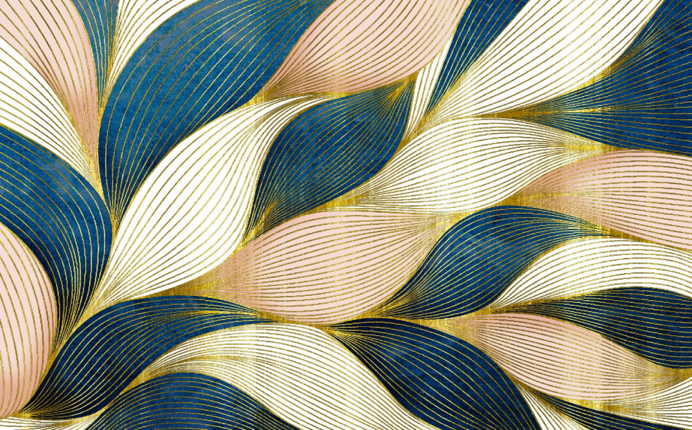Papier peint feuilles bleues et dorées liées (article a90061 ) de la catégorie Papier peint 3D
