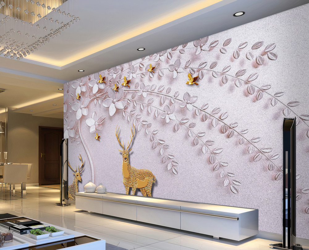 Papier peint fier cerf doré sous un arbre en fleurs (article pb7812 ) de la catégorie Papier peint Populaire