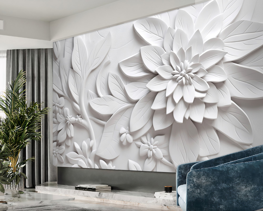 Papier peint Fleurs de l'intrigue blanche (article a93158 ) de la catégorie Papier peint 3D