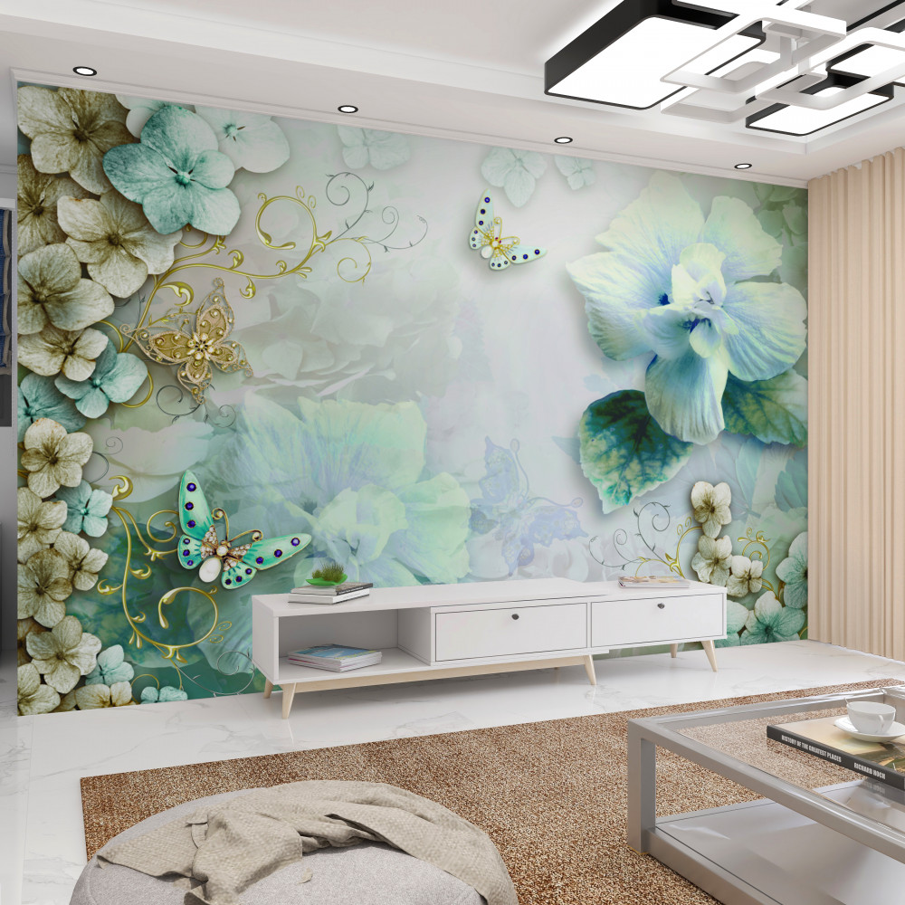 Papier peint Fleurs et papillons turquoise (article a90708 ) de la catégorie Papier peint Exclusif