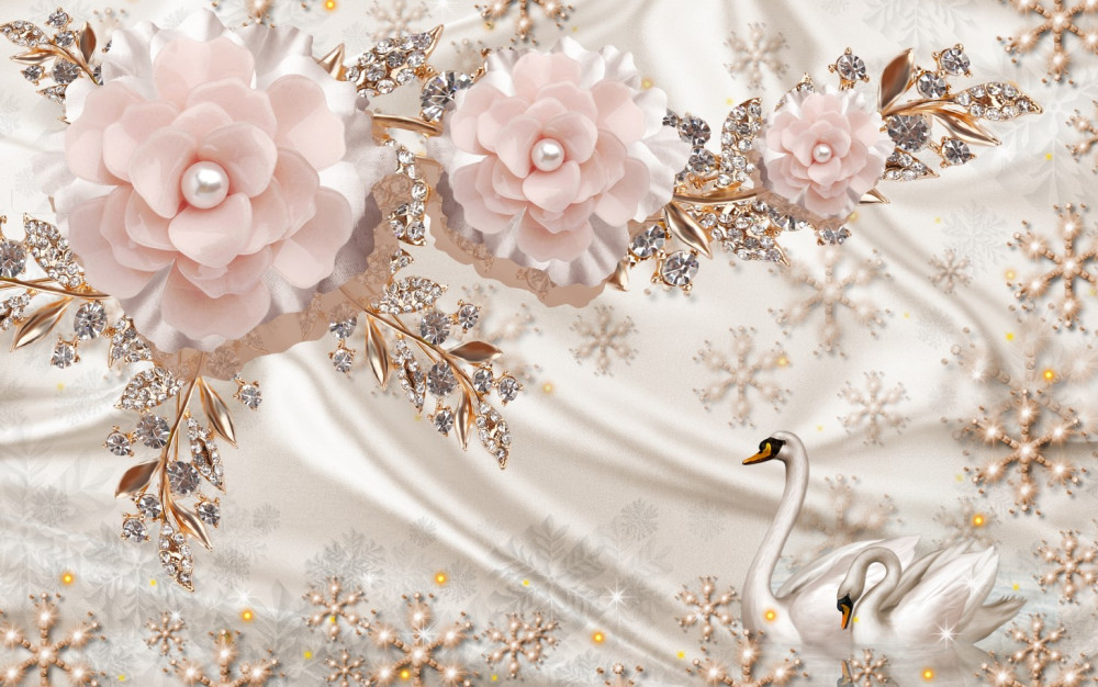 Papier peint Fleurs roses délicates avec des perles de soie (article a91080 ) de la catégorie Papier peint Fleurs 3D