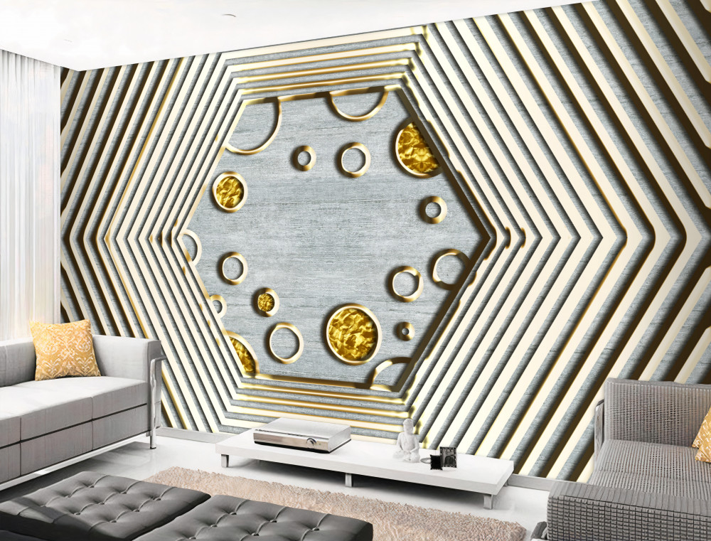 Papier peint Hexagone gris et or (article pb2274 ) de la catégorie Papier peint Géométrique 3D