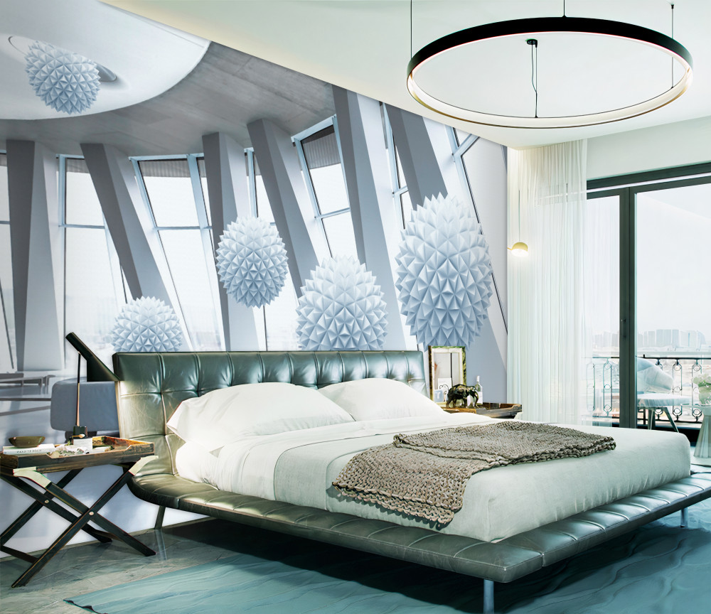 Papier peint Les balles s'échappent dans la perspective de la pièce