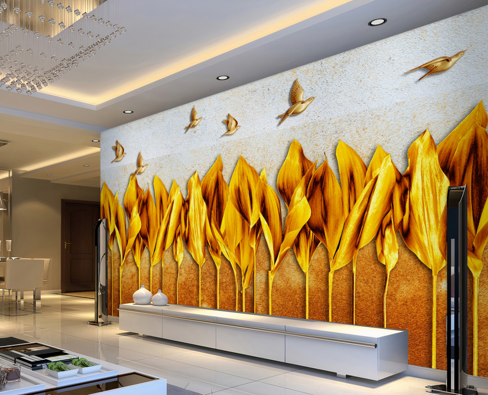Papier peint Les oiseaux survolent la forêt d'automne dorée (article a92508 ) de la catégorie Papier peint 3D