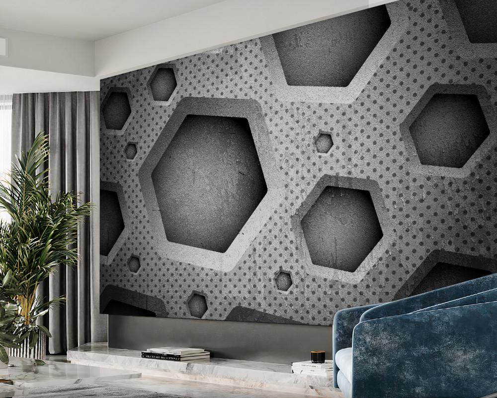 Papier peint Mur des hexagons abstraits (article pb10049 ) de la catégorie Papier peint Géométrique 3D