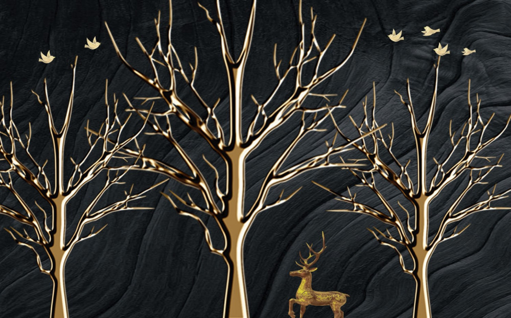 Papier peint Night Walk of Deer près des arbres (article pb4453 ) de la catégorie Papier peint 3D