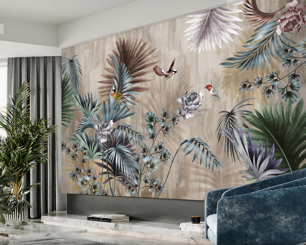 Papier peint Oiseaux entre la végétation tropicale (article a93744 ) de la catégorie Papier peint 3D