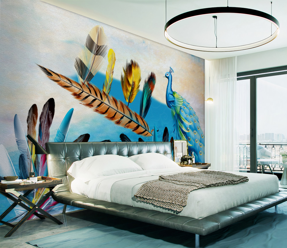 Papier peint paons et ses différentes plumes