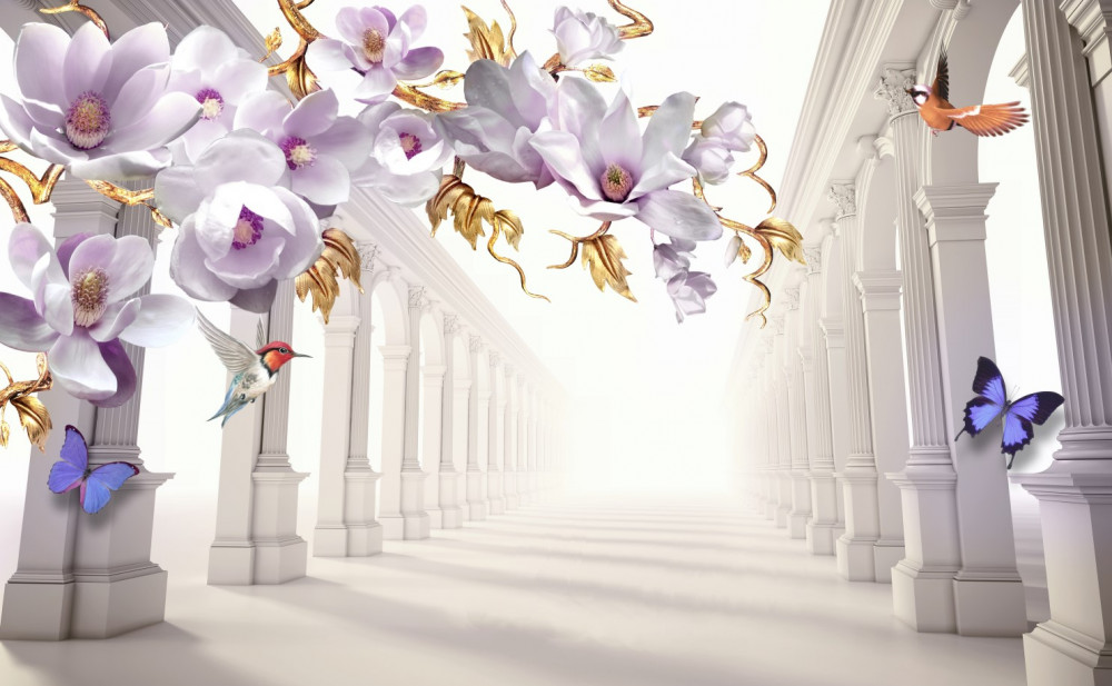 Papier peint Papillons sur des fleurs légères dans un tunnel sans fin (article a90926 ) de la catégorie Papier peint 3D