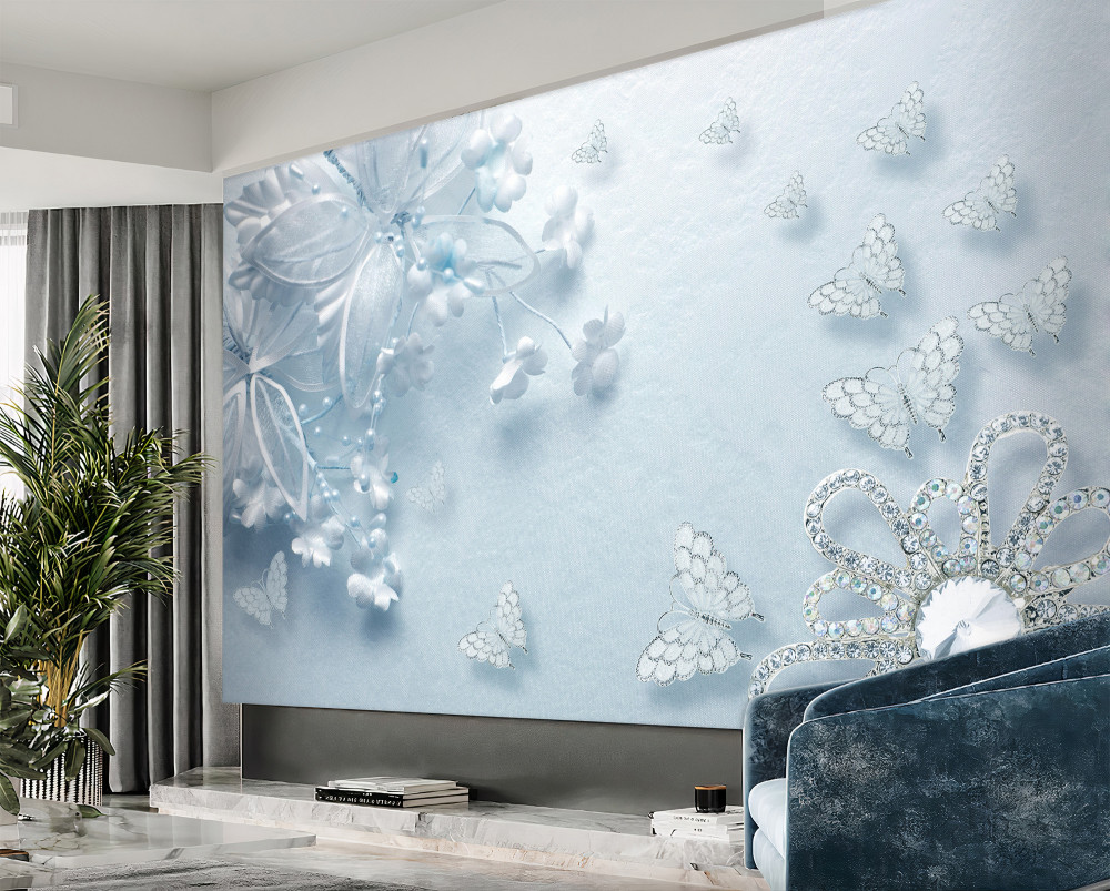 Papier peint Papillons sur les bourgeons en fleurs (article a94396 ) de la catégorie Papier peint 3D