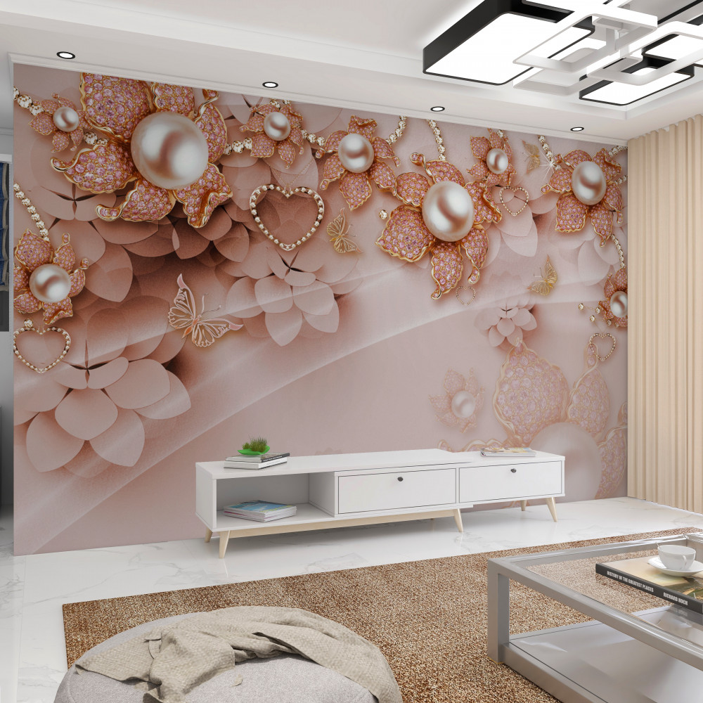 Papier peint Perles d'or en forme de fleur (article a91309 ) de la catégorie Papier peint Fleurs 3D
