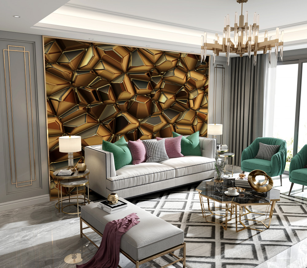 Papier peint polyède doré (article a93054 ) de la catégorie Papier peint 3D