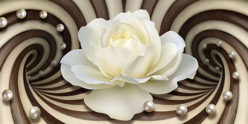Papier peint Rose blanche avec turbinii et perles (article a89272 ) de la catégorie Papier peint Floral