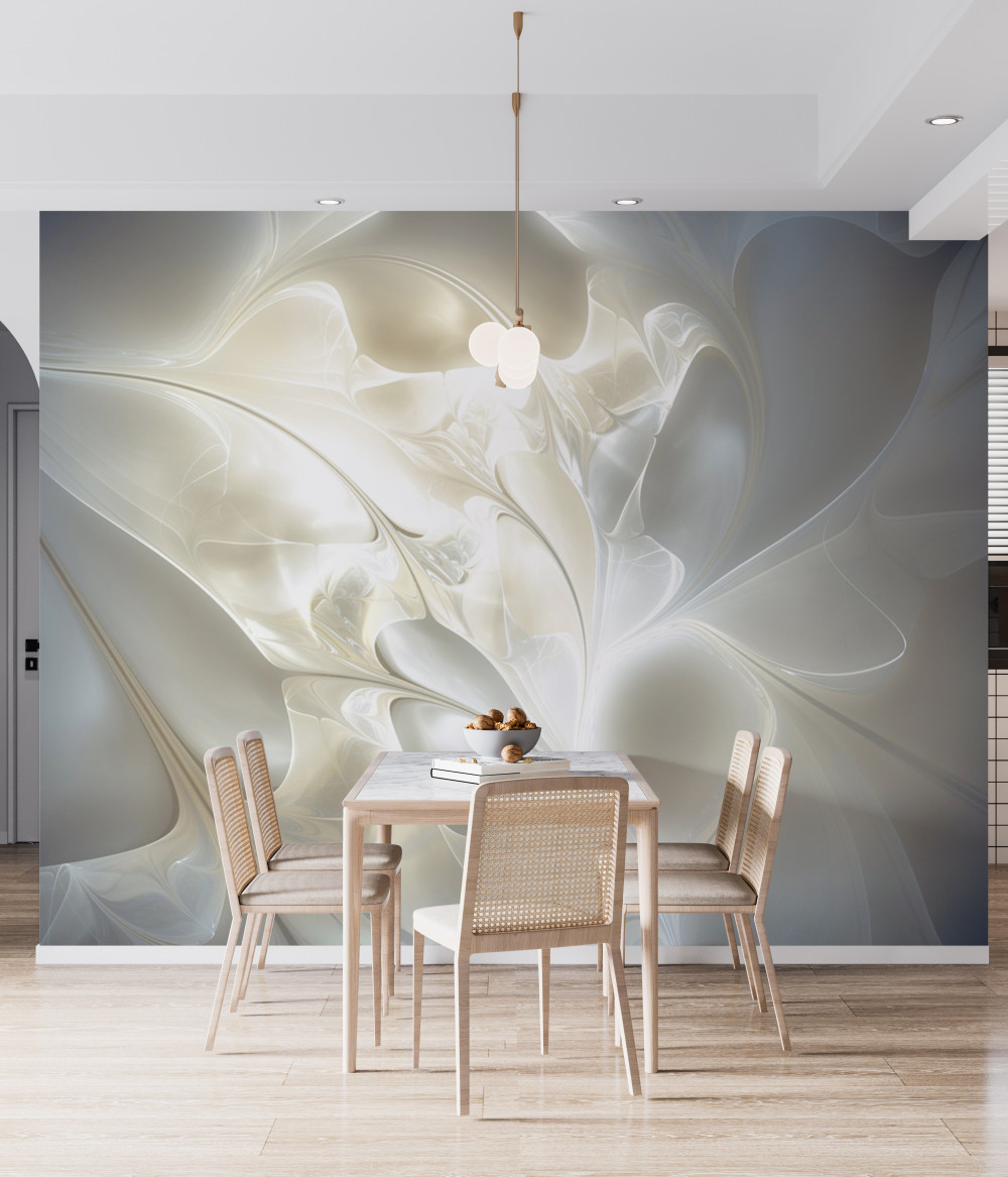 Papier peint Silver Feuilles à l'aube (article a93545 ) de la catégorie Papier peint 3D