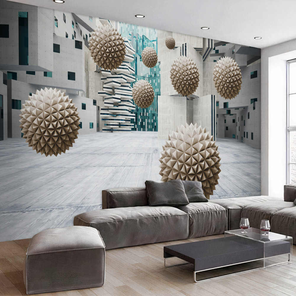 Papier peint Sphères flottantes en bronze (article a88310 ) de la catégorie Papier peint Tunnel 3D