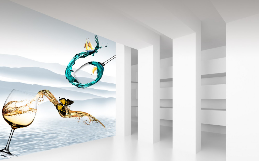 Papier peint Verres avec abstraction de boissons (article a91605 ) de la catégorie Papier peint Tunnel 3D