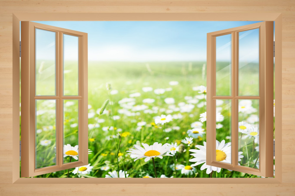 Papier peint Prato di Margherite depuis la fenêtre (article a90915 ) de la catégorie Papier peint Afficher depuis la fenêtre