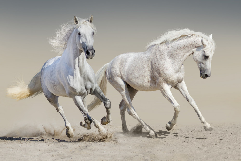 Papier peint Deux chevaux blancs qui longent le sable (article a89367 ) de la catégorie Papier peint Animaux