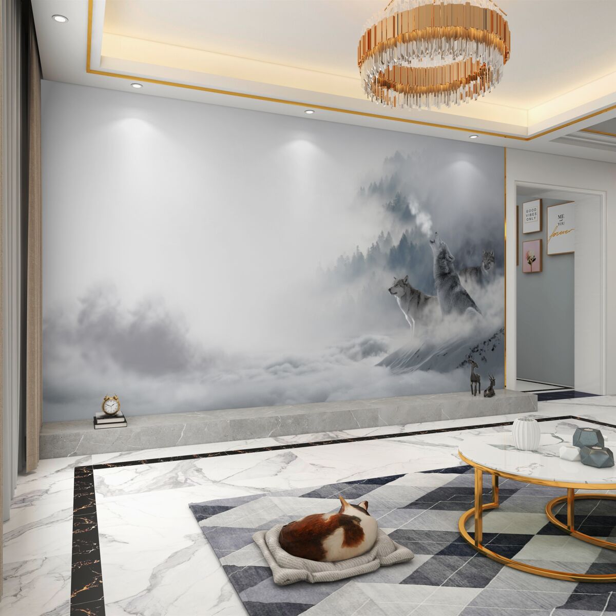 Papier peint Les loups hurlent dans la forêt d'hiver