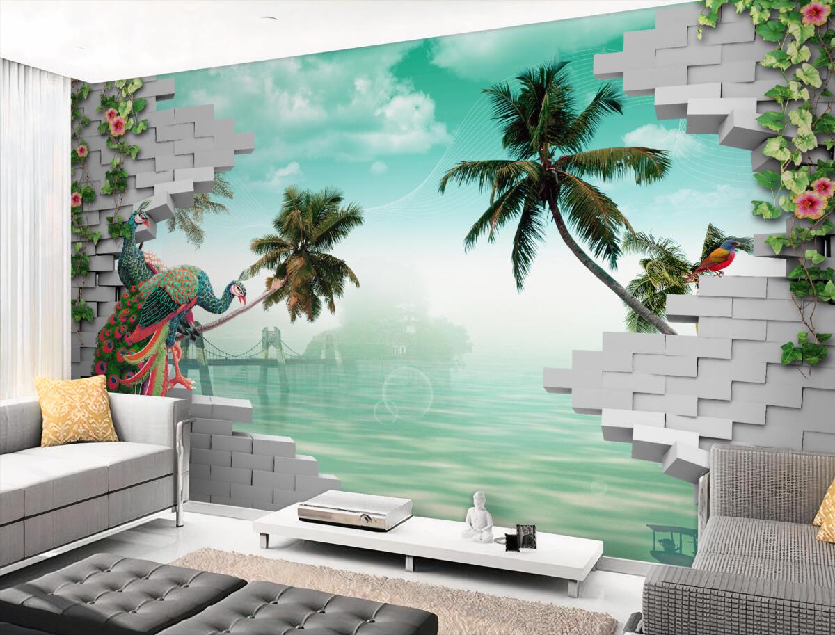 Papier peint Paon sur un palmier (article a91638 ) de la catégorie Papier peint Animaux