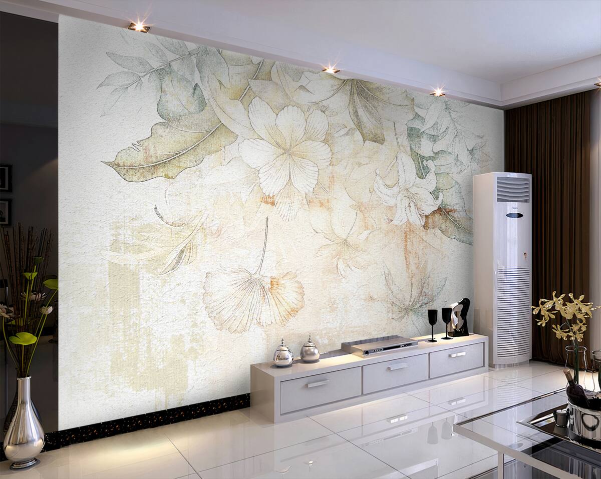Papier peint Grandes fleurs blanches sur un mur en béton