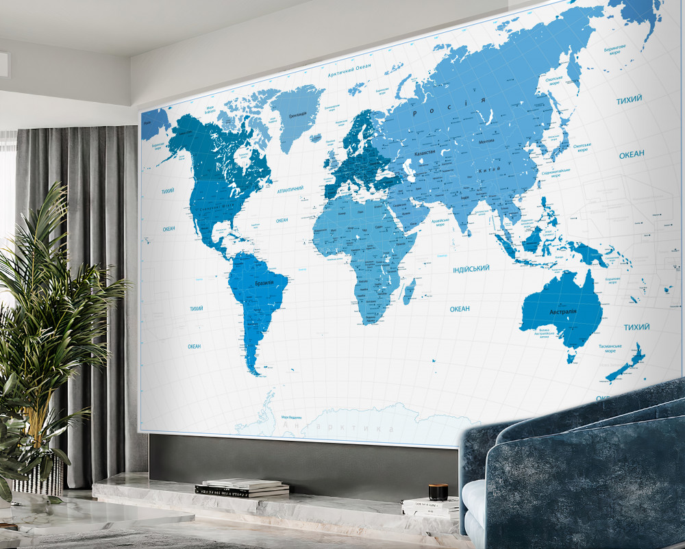 Papier peint Carte du monde en couleur bleue (article a91525 ) de la catégorie Papier peint Cartes du monde