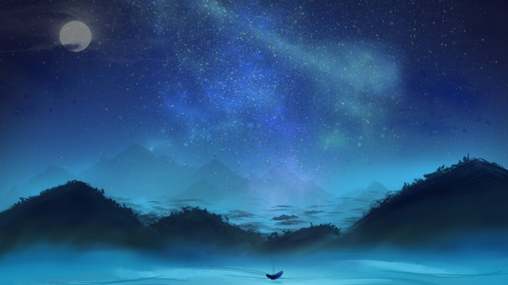 Papier peint nuit étoilée et aurore nord épais sur les montagnes (article a92065 ) de la catégorie Papier peint Ciel