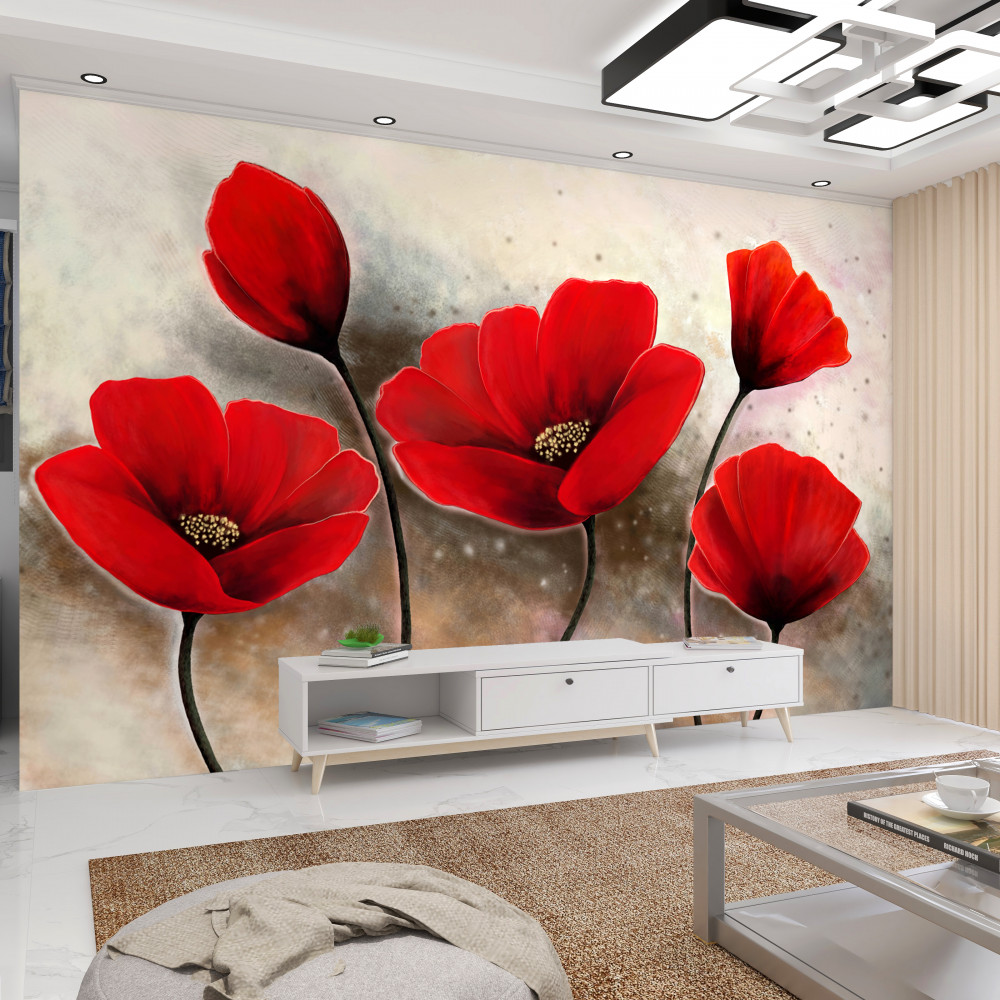 Papier peint Coquelicots et pissenlits dans l'abstraction du printemps