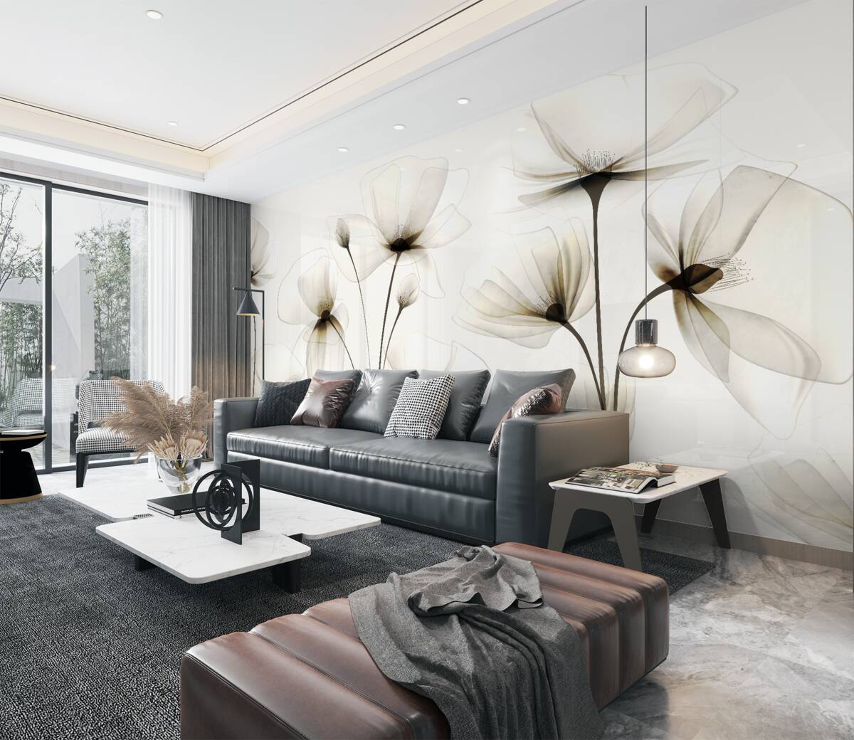 Papier peint Maxi blanc et autres fleurs sous la pluie