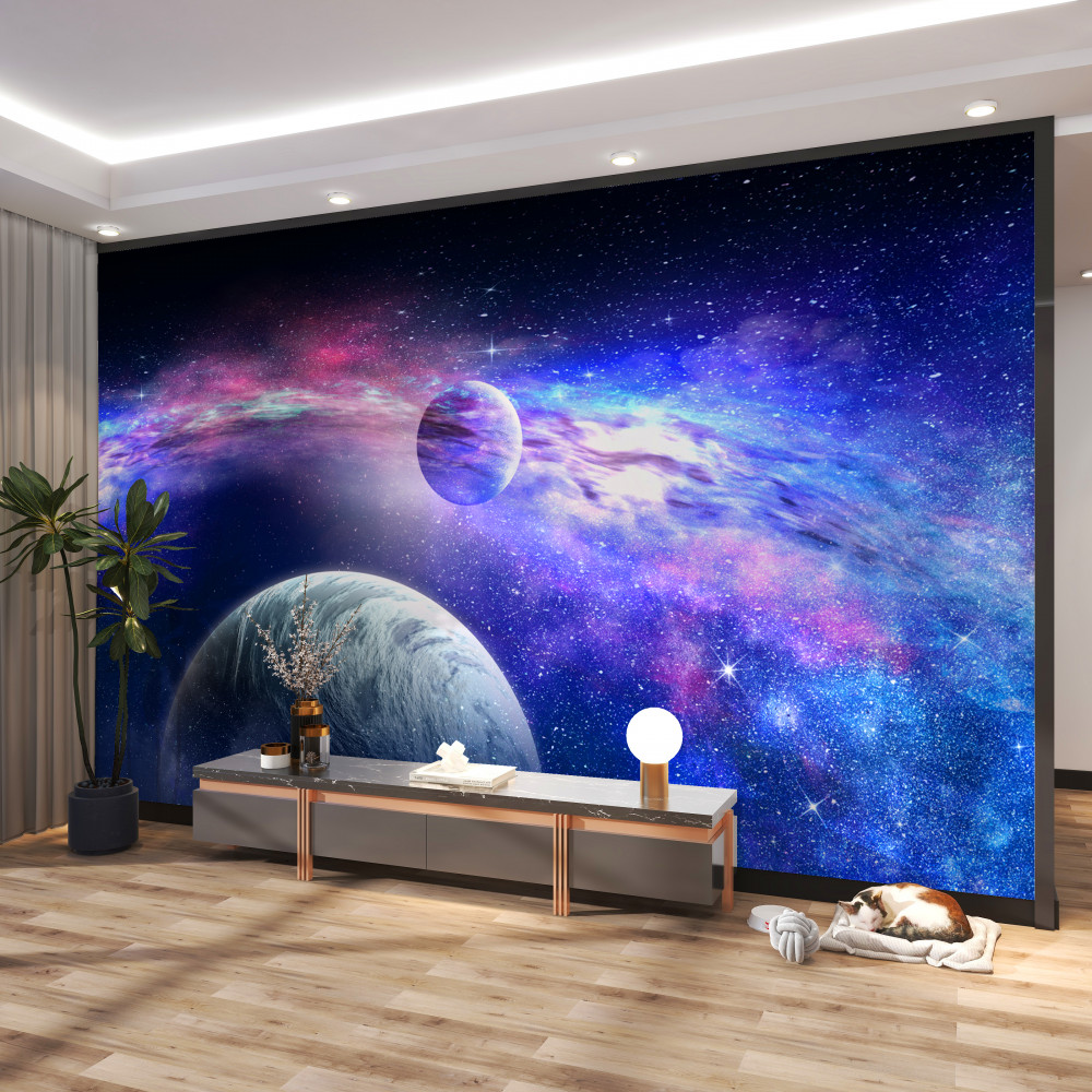Papier peint Abstraction spatiale des planètes et des montagnes