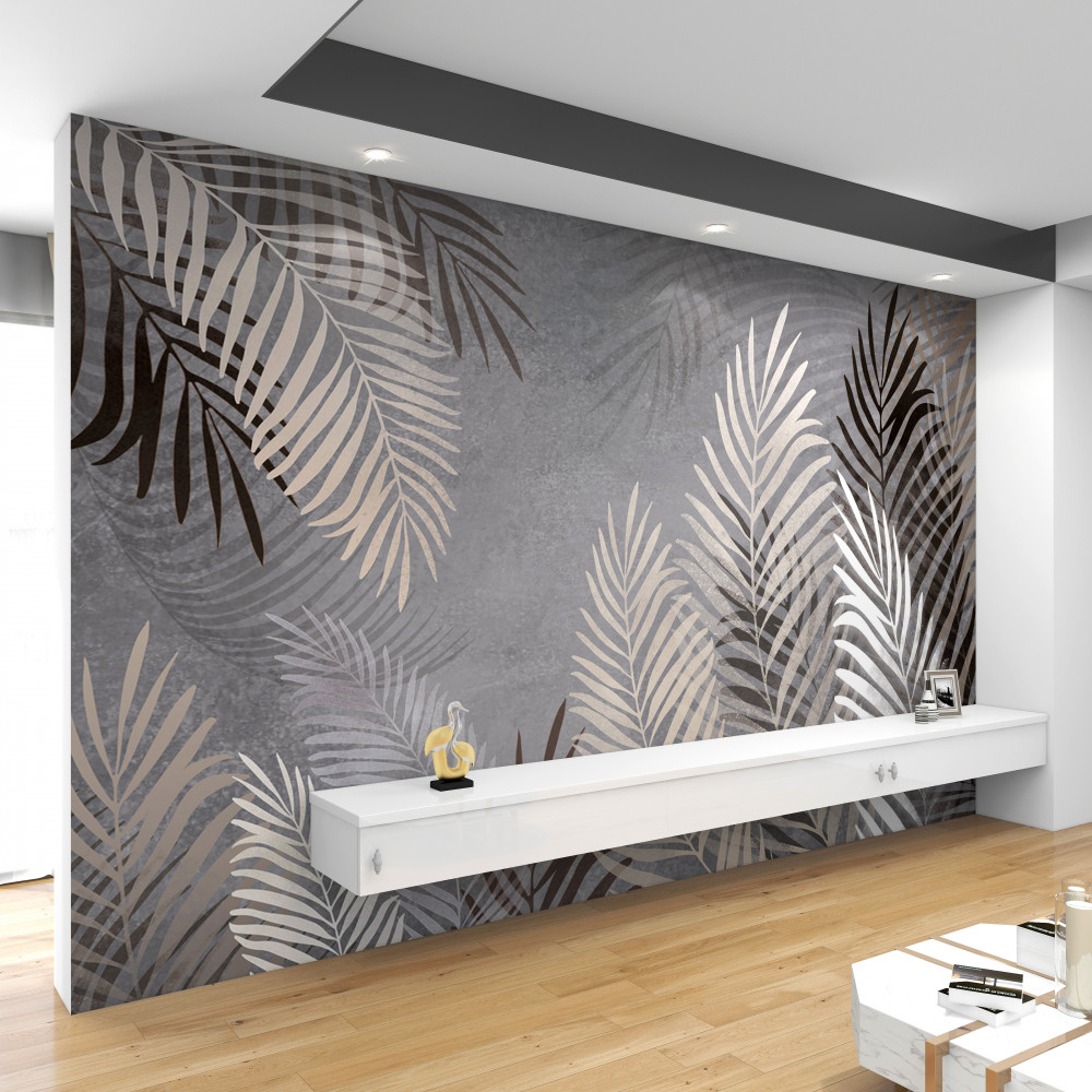 Papier peint feuilles de palmier molles dans les teintes d'automne