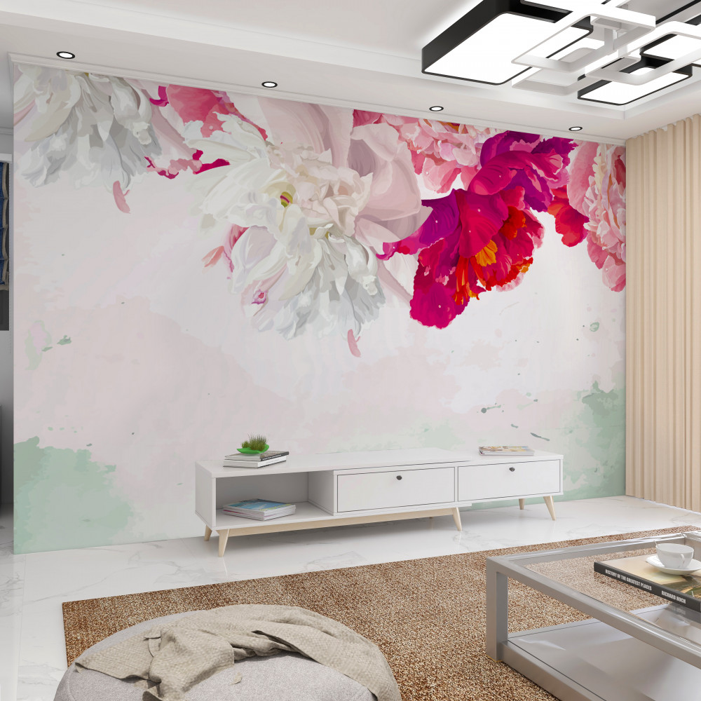 Papier peint Fond blanc avec des fleurs vives (article pb1130 ) de la catégorie Papier peint Fleurs 3D