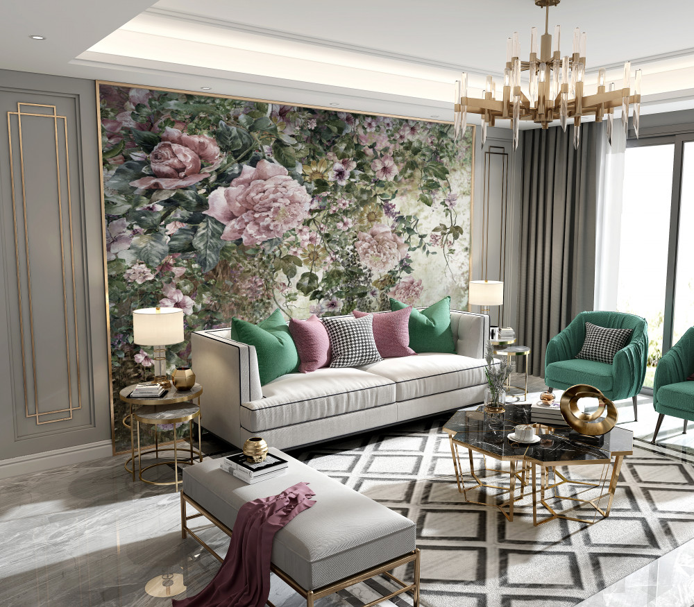 Papier peint Une émeute de vert et de fleurs
