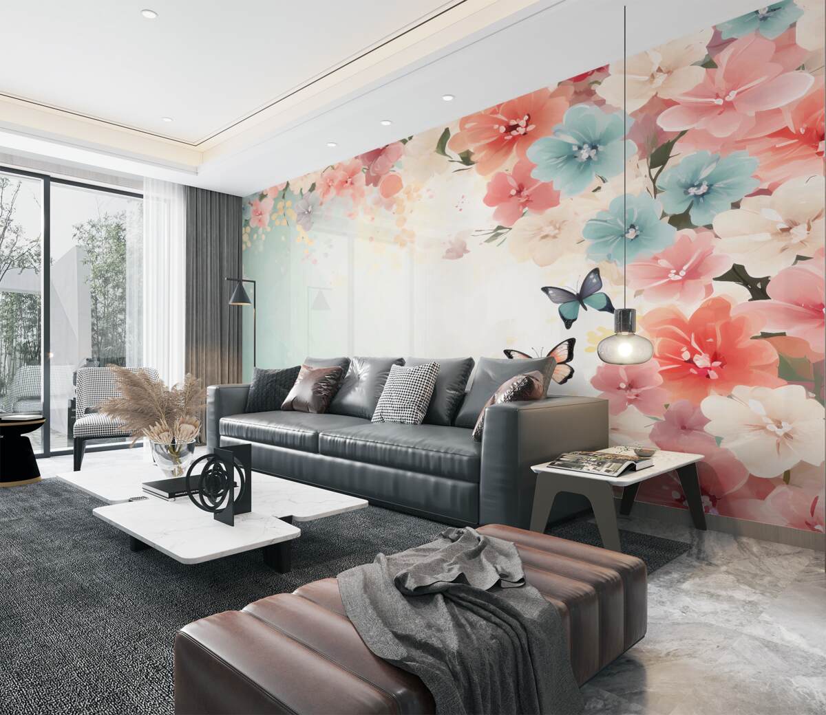 Papier peint Bouquets délicats de fleurs et de papillons (article a98262 ) de la catégorie Papier peint Floral