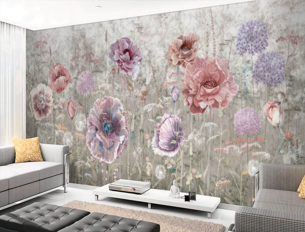 Papier peint Poppies multicolores dans un domaine de la pelouse (article a97998 ) de la catégorie Papier peint Floral