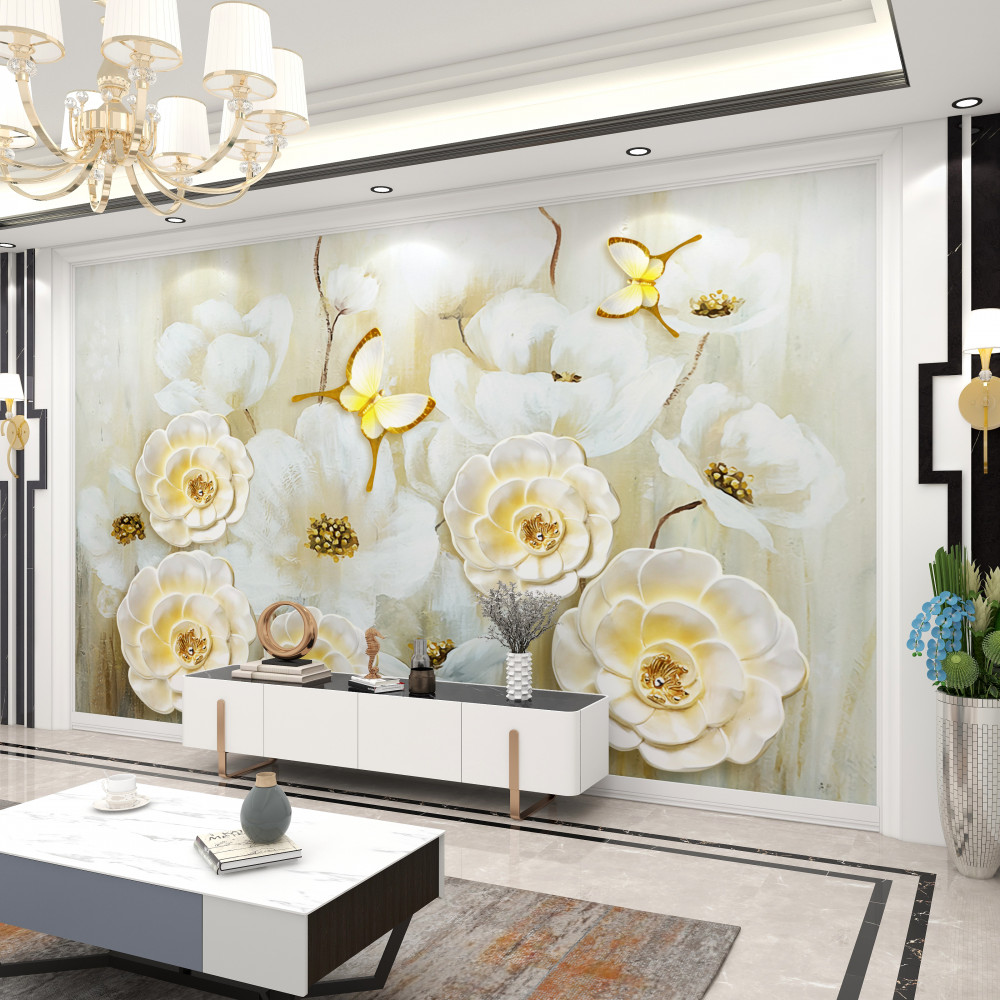 Papier peint Les papillons placés sur un grand bosquet blanc