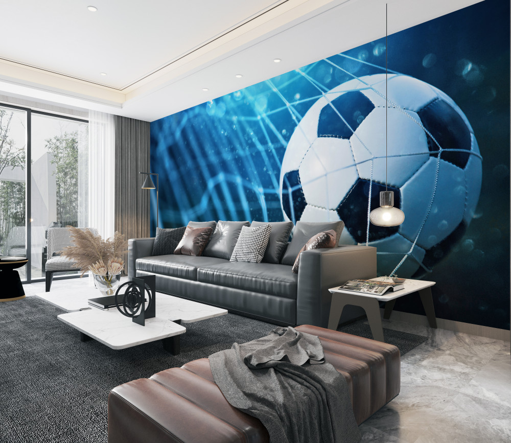 Papier peint forme d'un ballon de football et de filet sur fond vert