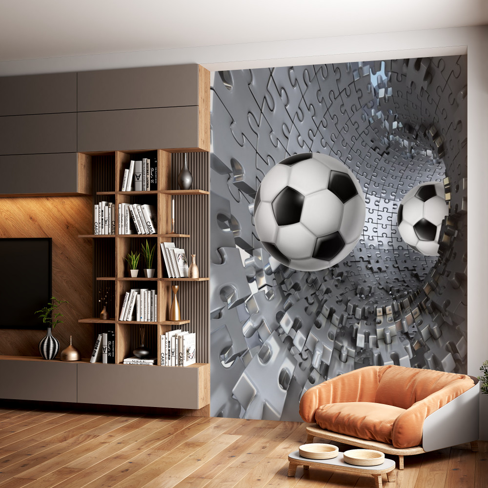 Papier peint ballon de football dans un tourbillon de pièces de mosaïque (article a93981 ) de la catégorie Papier peint Sport