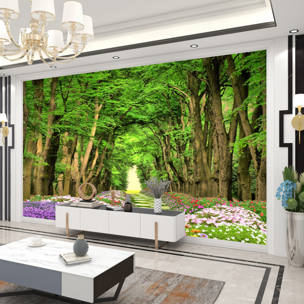 Papier peint Une clairière saupoudrée de fleurs dans la forêt