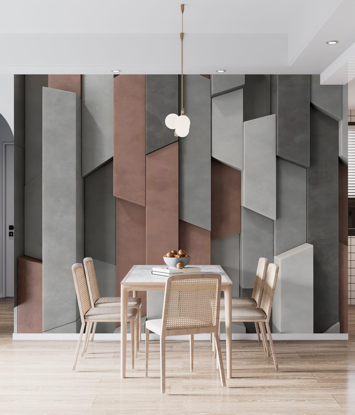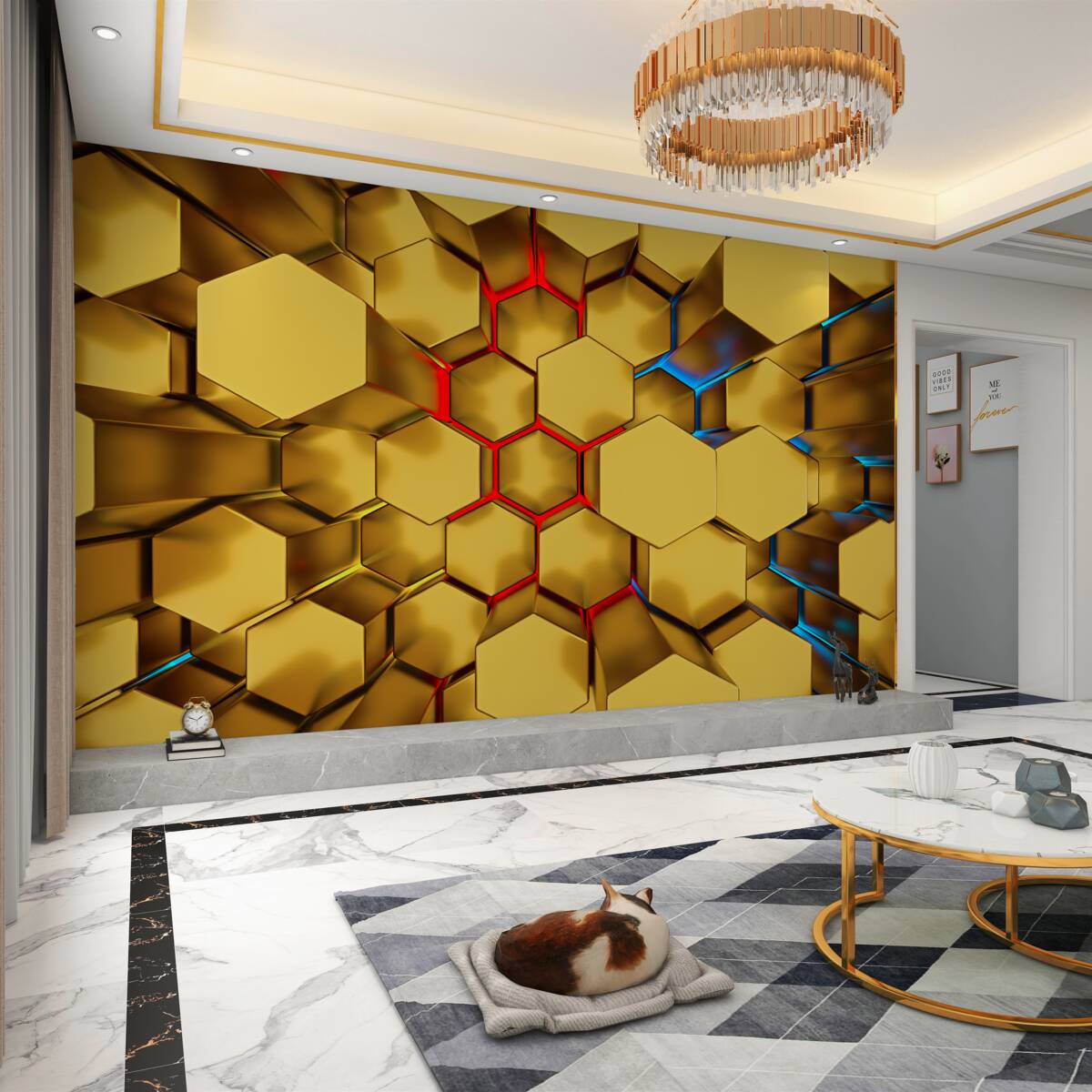 Papier peint Cubes volumétriques 3D avec inserts dorés