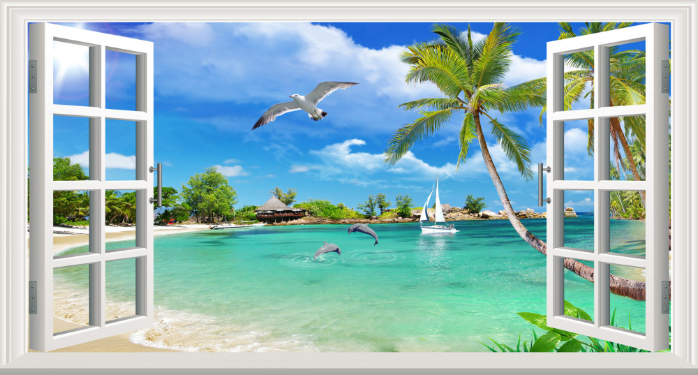 Papier peint Aux accessoires ouverts sur la plage et la mer (article a94436 ) de la catégorie Papier peint Afficher depuis la fenêtre